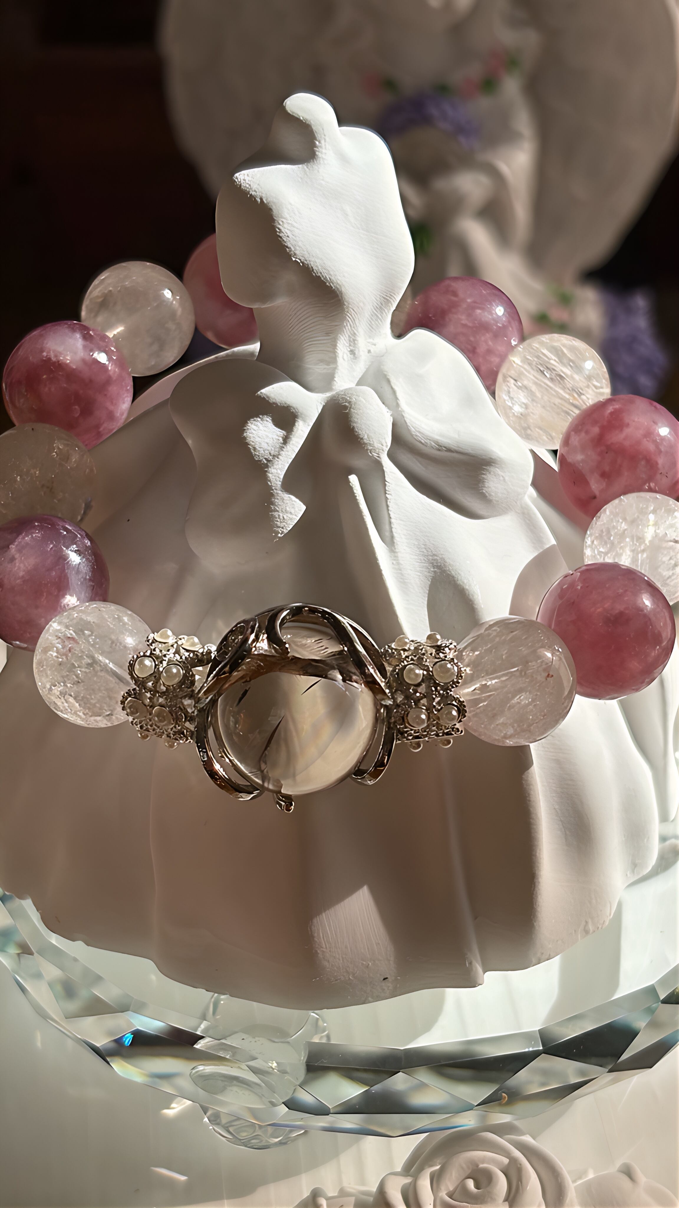 虹入りスモーキークォーツ&キラキラアゼツライト&キラキラピンクマイカデザインブレスレット⋈*。゚