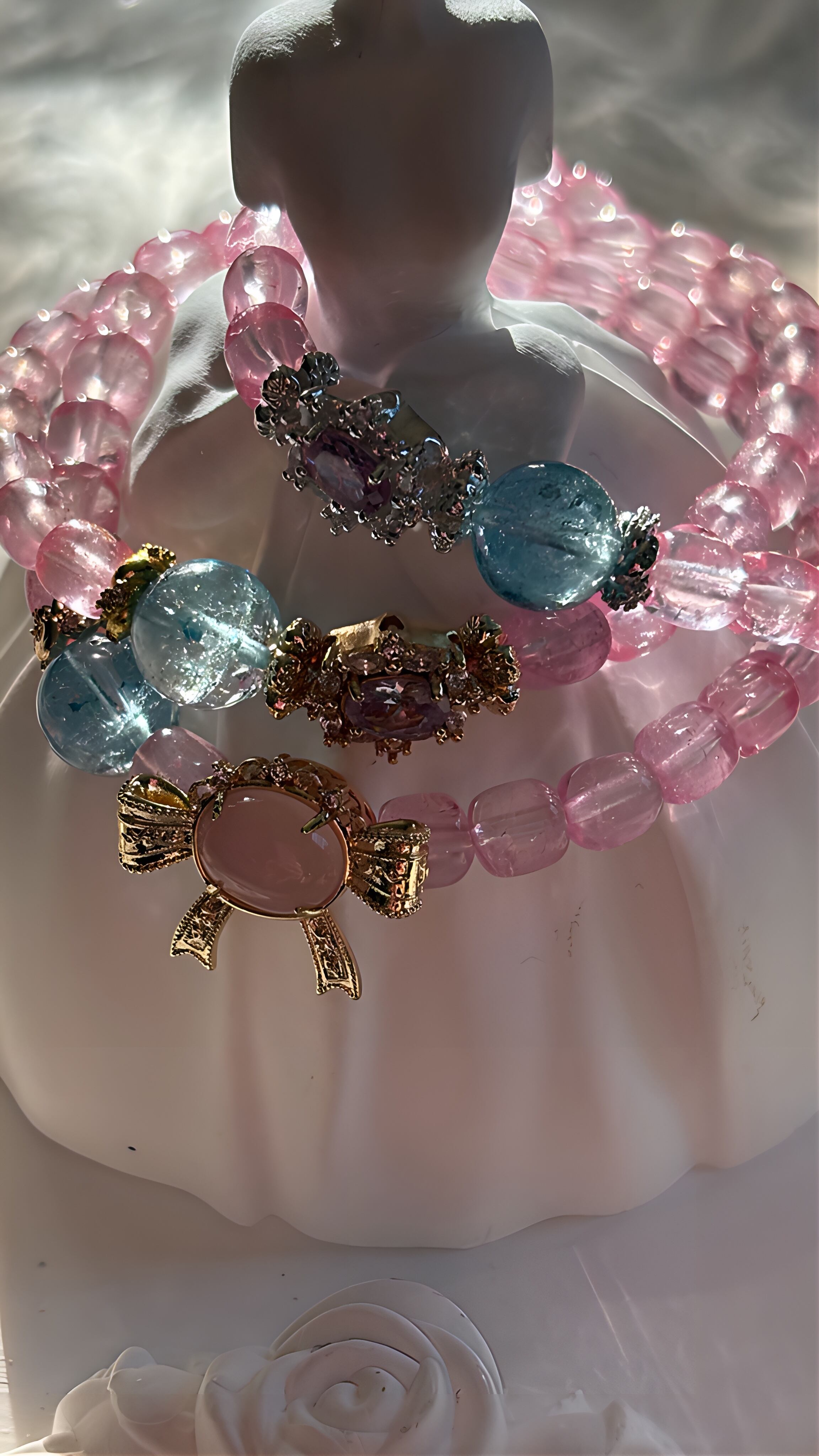 ピンクトパーズ&ブルートパーズデザインブレスレット⋈*。゚