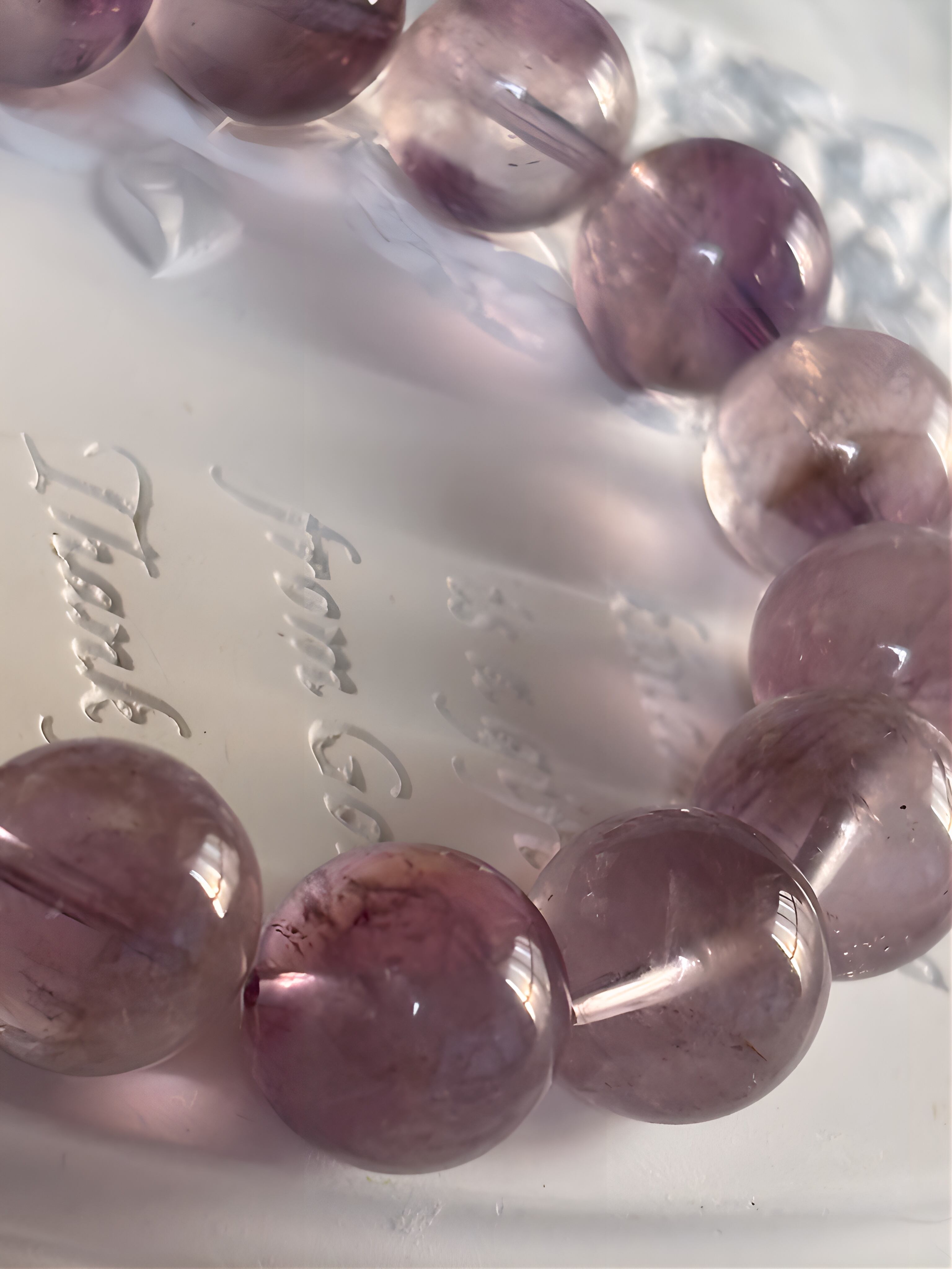 アメジスト ラビットヘアとは、アメジストの中にウサギの毛のようなインクルージョン(内包物)が入った天然石のことです。この石は、癒し、安らぎ、直感力、金運、浄化など、様々な効果があるとされています。